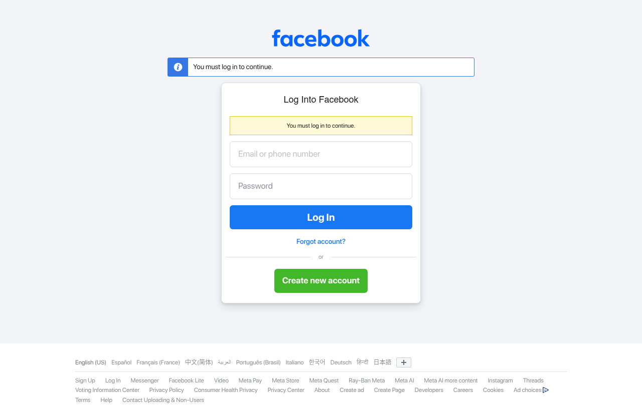 - Bot detection: Facebook detects datacenter IPs and headless browsers, often blocking or redirecting requests
