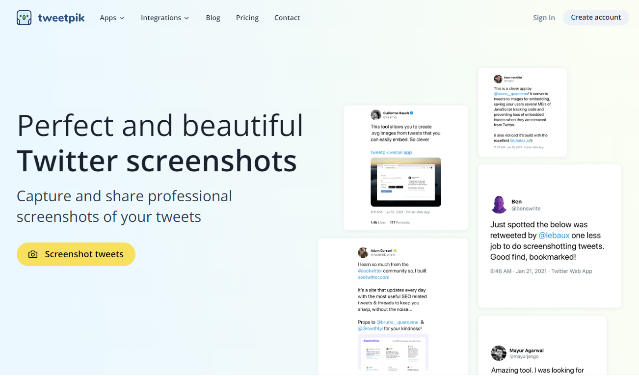 If you simply want to screenshot some tweets and you're not looking to automate the process, you can try one of the following apps.
