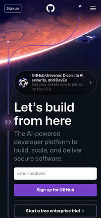 Render a thumbnail screenshot of github.com, taken from a mobile viewport.