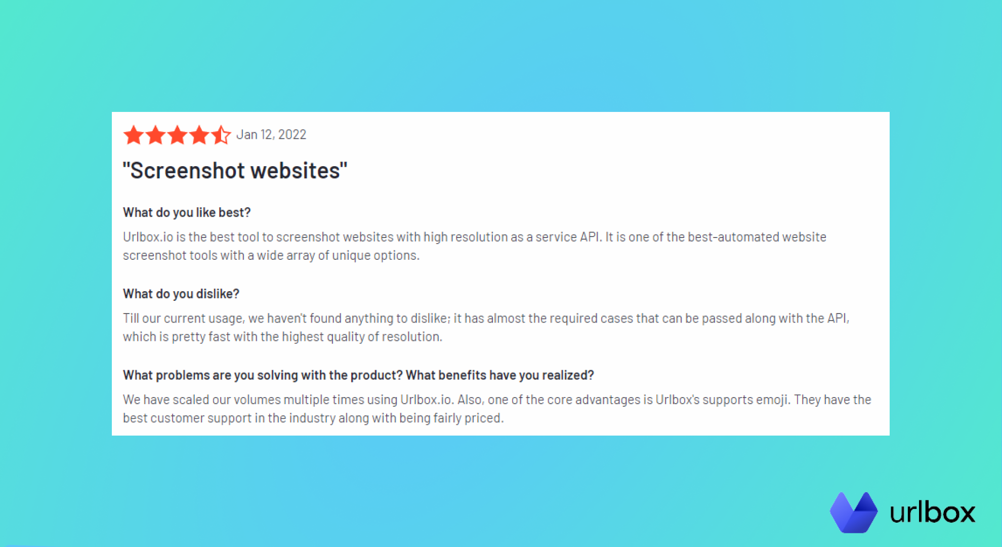 Note: Urlbox is our product. We’re proud to be a premium provider of website screenshots,and we take pride in our excellent customer support. Transform the way you generate website screenshots and try Urlbox here.