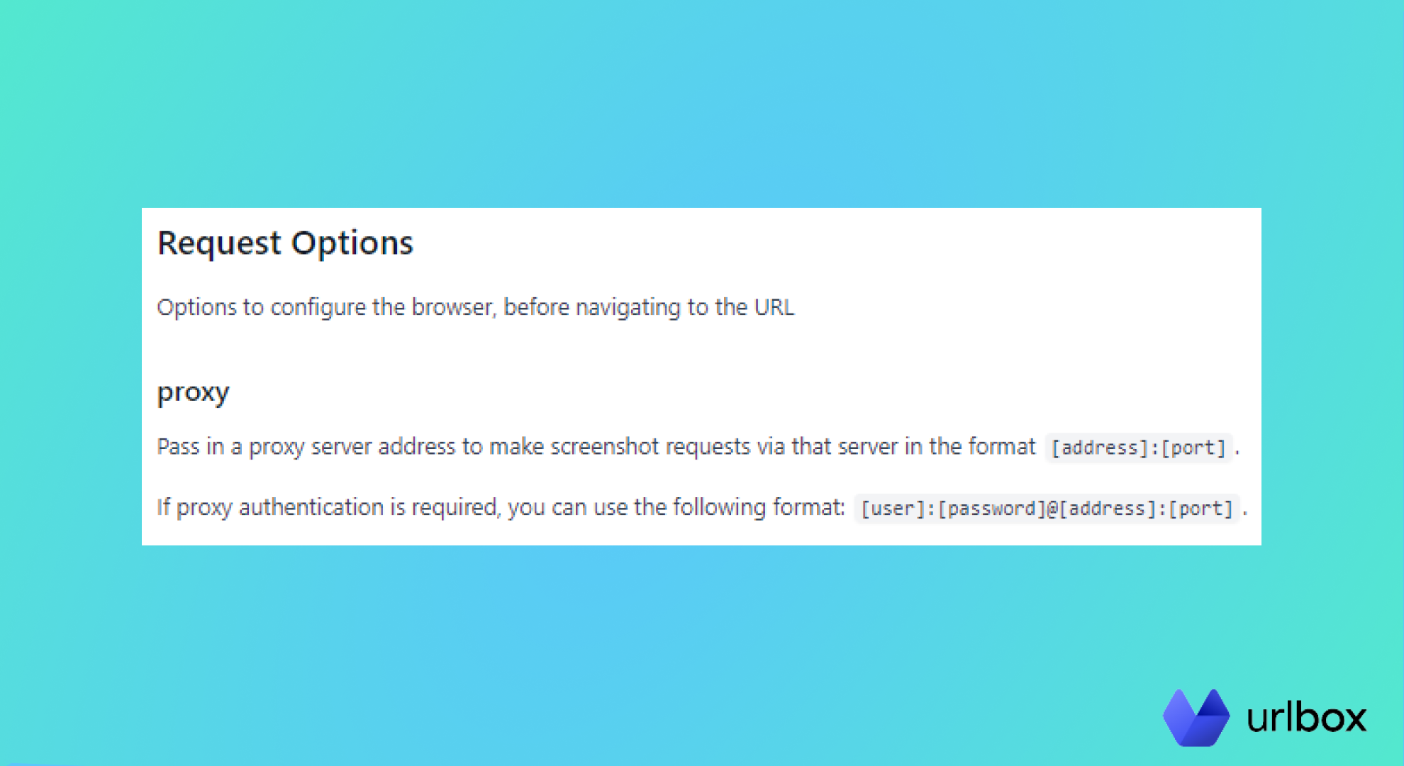 We want to make Urlbox as flexible as possible, so we've added the ability to use your proxy server when taking screenshots.