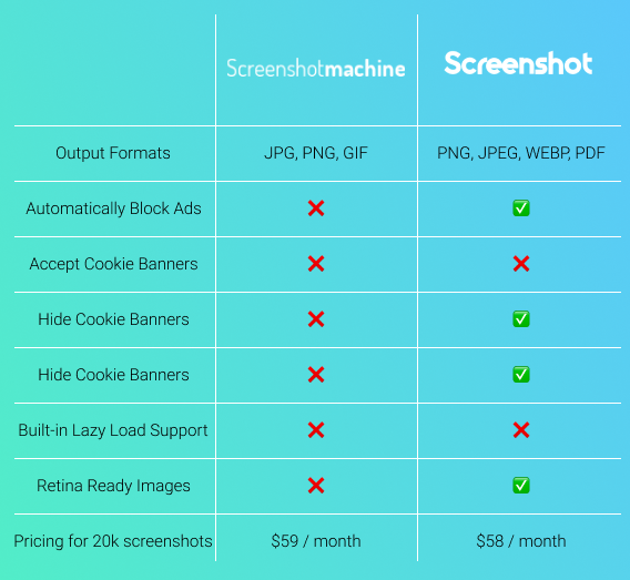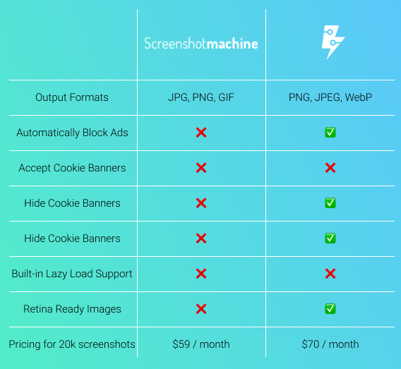 Even though it's easy to configure and works with all major programming languages, Screenshot Machine comes with some limitations: