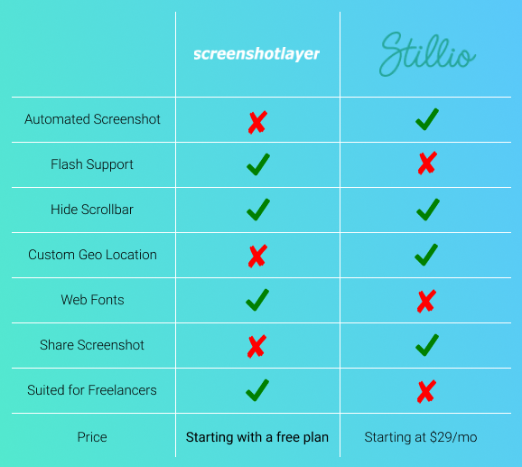 However, some users switch to other automated screenshot APIs and look for Stillio alternatives that better fit their business model.