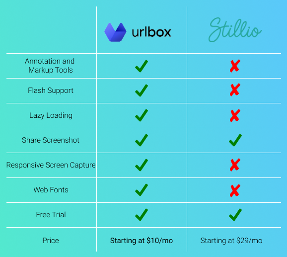 Stillio is an excellent tool for businesses that need to take a lot of automated screenshots. However, it has limited capabilities in terms of customization. As a result, many companies typically use other screenshot tools, such as Urlbox, Gyazo, or Screenshotlayer.